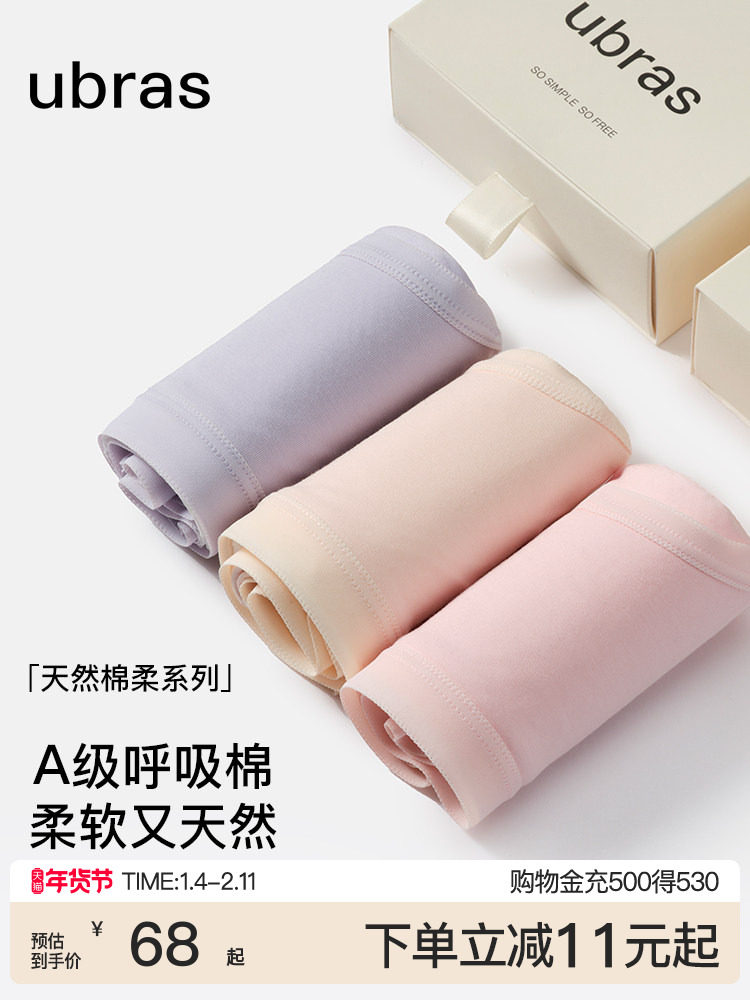 Ubras Pure Cotton Underwear for Women, 100% Cotton, Extra Long, 7A Grade Antibacterial Crotch, Breathable, Mid-High Waist, Triangle Shorts for Girls