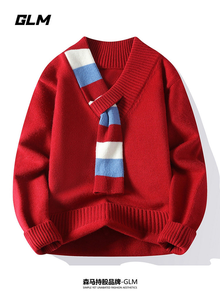 Glm New Year Cherry Angora Red Year of the Horse Spring Festival Atmosphere Cold-Resistant Warm Sweater for Men and Women