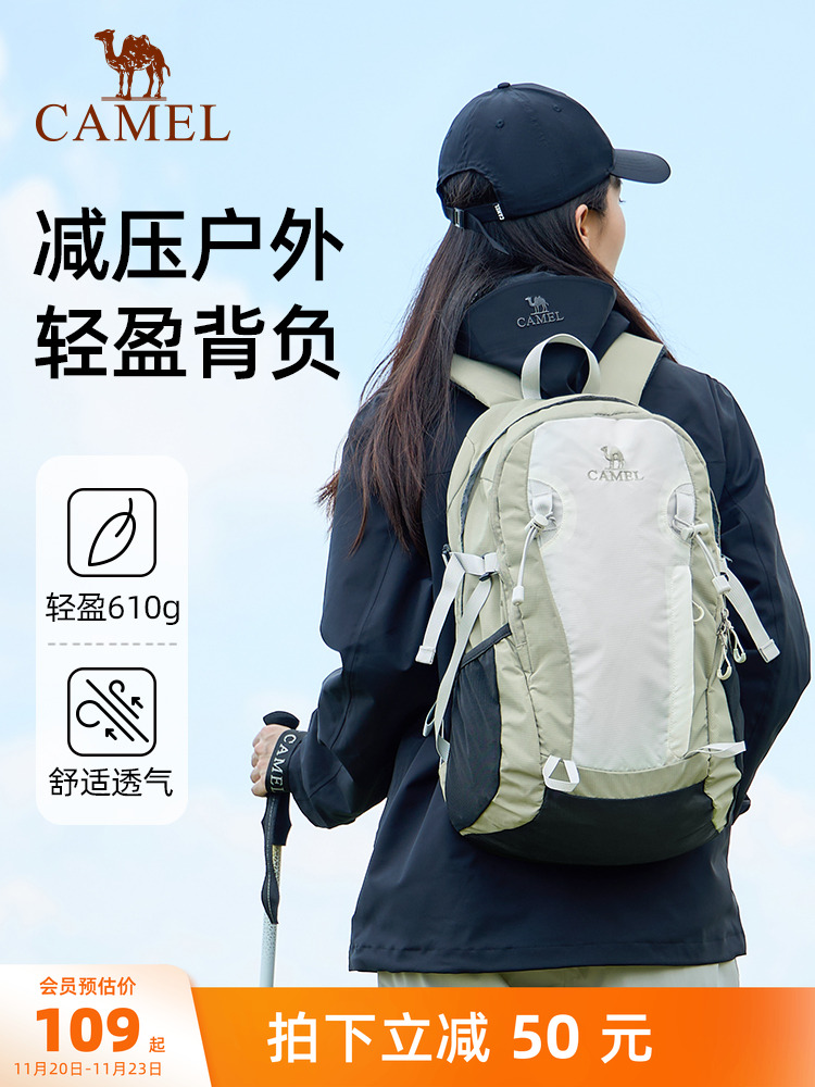 [Same Style as Dilireba] Camel Outdoor Hiking Backpack, Short-Distance Travel Backpack, Lightweight Backpack for Hiking and Climbing, School Bag