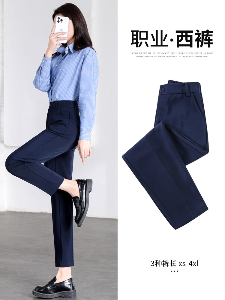 Navy Blue Suit Pants for Women, Spring and Autumn Professional Formal Work Pants, Petite Black Cropped Straight-Leg Cigarette Pants