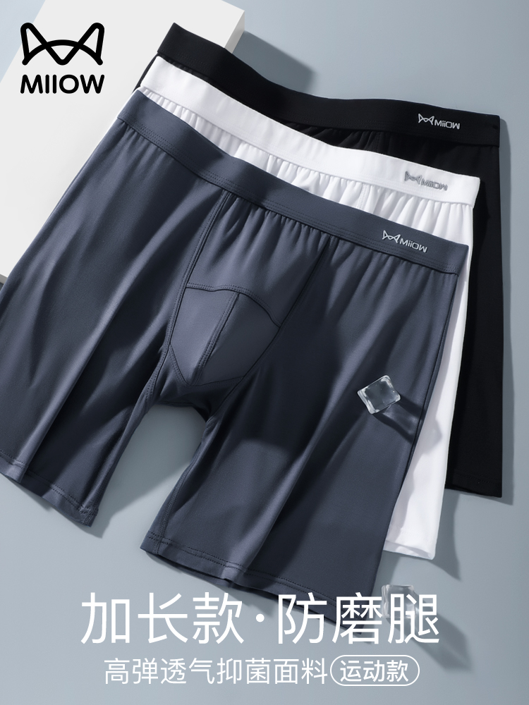 Men's Anti-Chafing Cotton Sports Running Boxer Shorts, Plus Size, Long Style, Ice Silk Four-Corner Shorts