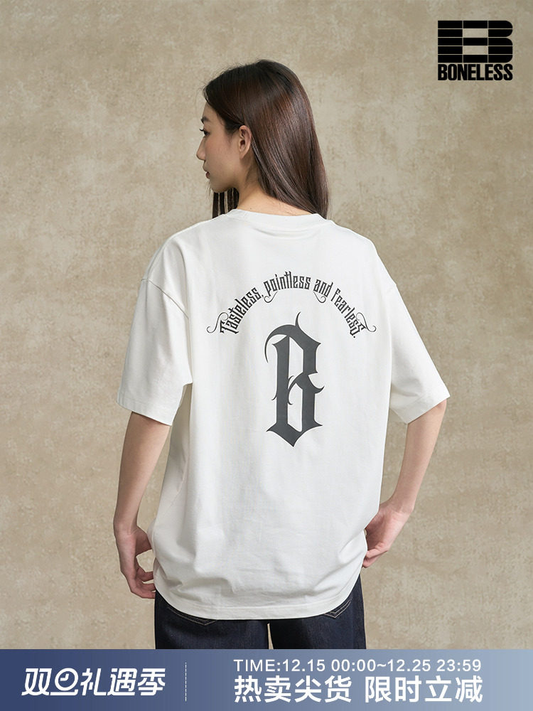 Boneless Basic Arc Logo Print American-Style Loose Short-Sleeved Summer T-Shirt for Men and Women Half-Sleeved T-Shirt