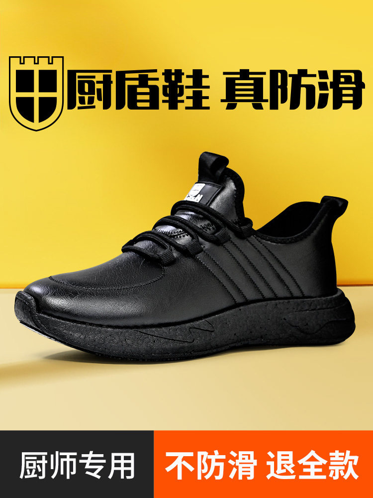Kitchen Shield Casual Shoes Black Unisex Spring Kitchen Chef Shoes Non-Slip Waterproof Oil-Proof Thick-Soled Odor-Resistant Work Shoes