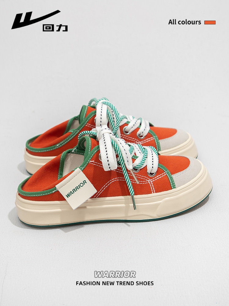 Pull Back Canvas Shoes in Small Dirty Orange Color for Women, 2025 Autumn and Winter New Style, Two-Way Wear, Slip-On, Half-Slipper, Casual Sneakers