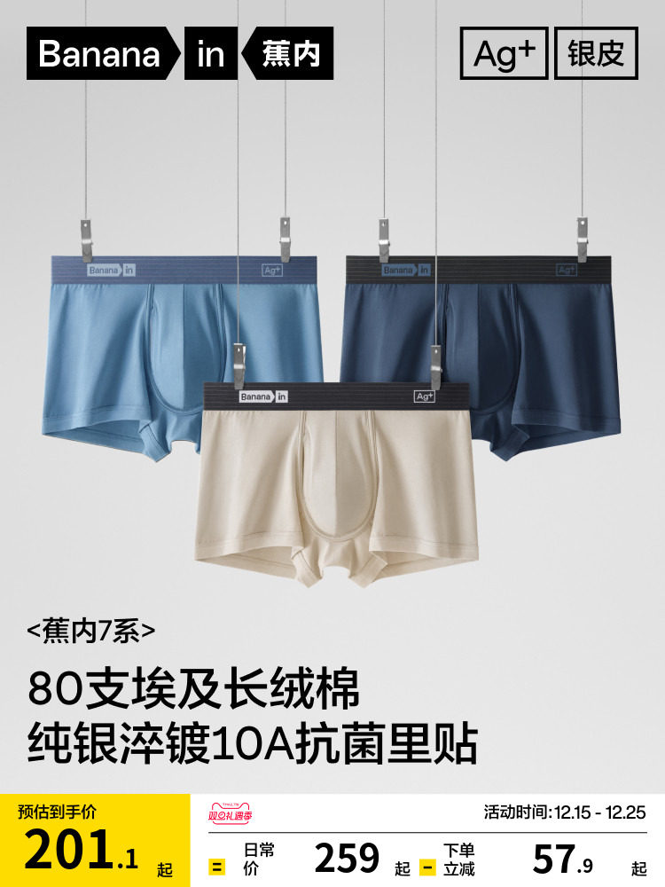 3 Pieces | Jiao Nei Yinpi 701S Men's Boxer Briefs, Pure Cotton, Breathable, New High-End Long-Staple Cotton Shorts
