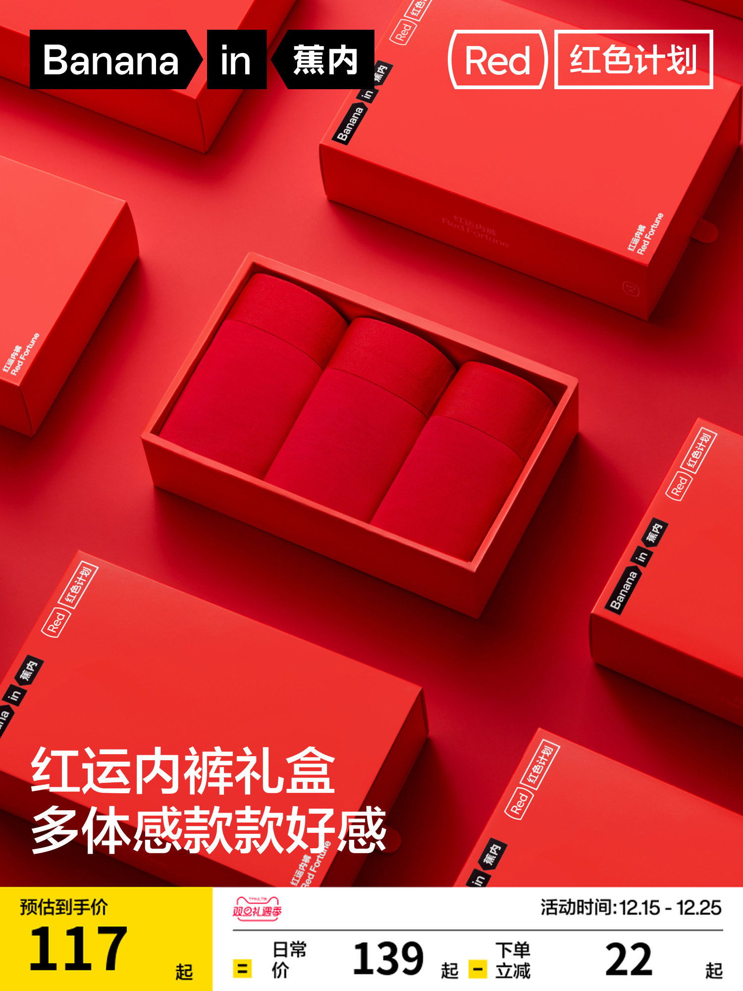 Gift Box | Jiao Nei Red Plan 5 Series Modal Pure Cotton Men's Underwear Women's Socks for Birth Year, Wedding, New Year