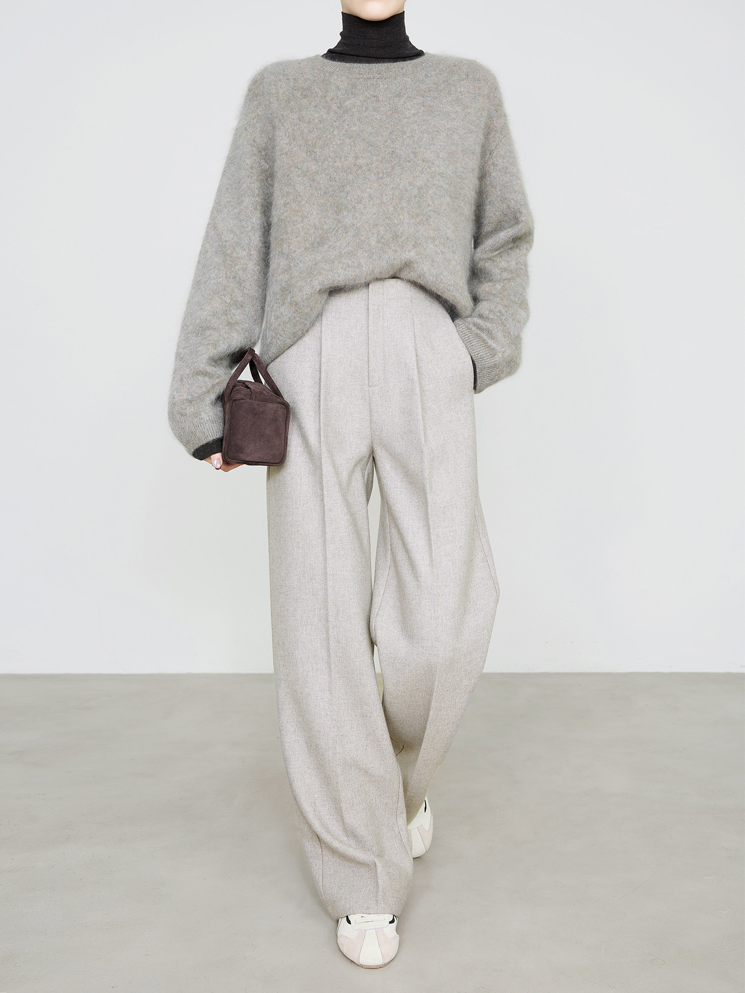 Xia Mo Cartoon Style High-Waisted Oatmeal Beige Pants for Women, Autumn and Winter Thick Tencel Wool Suit Pants, Extra Long 7943