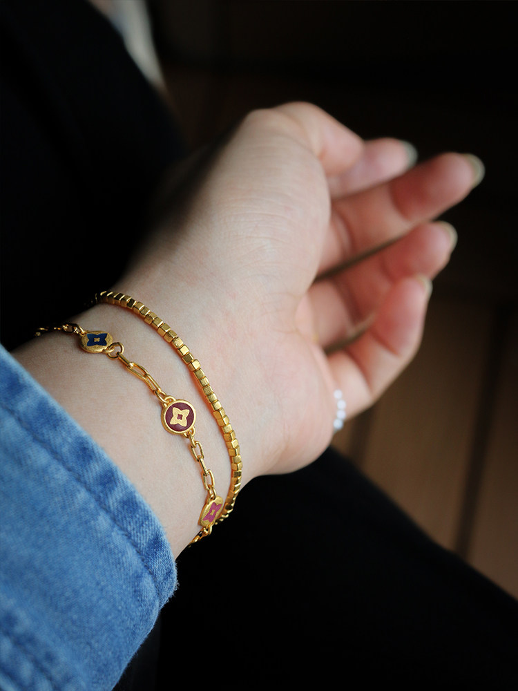 Dongyue Jewelry Natural Copper Hair Crystal Bracelet for Men and Women Single Circle Red Copper Hair Crystal Gold Plate Titanium Crystal Smooth Hair Cat's Eye Stone Bracelet
