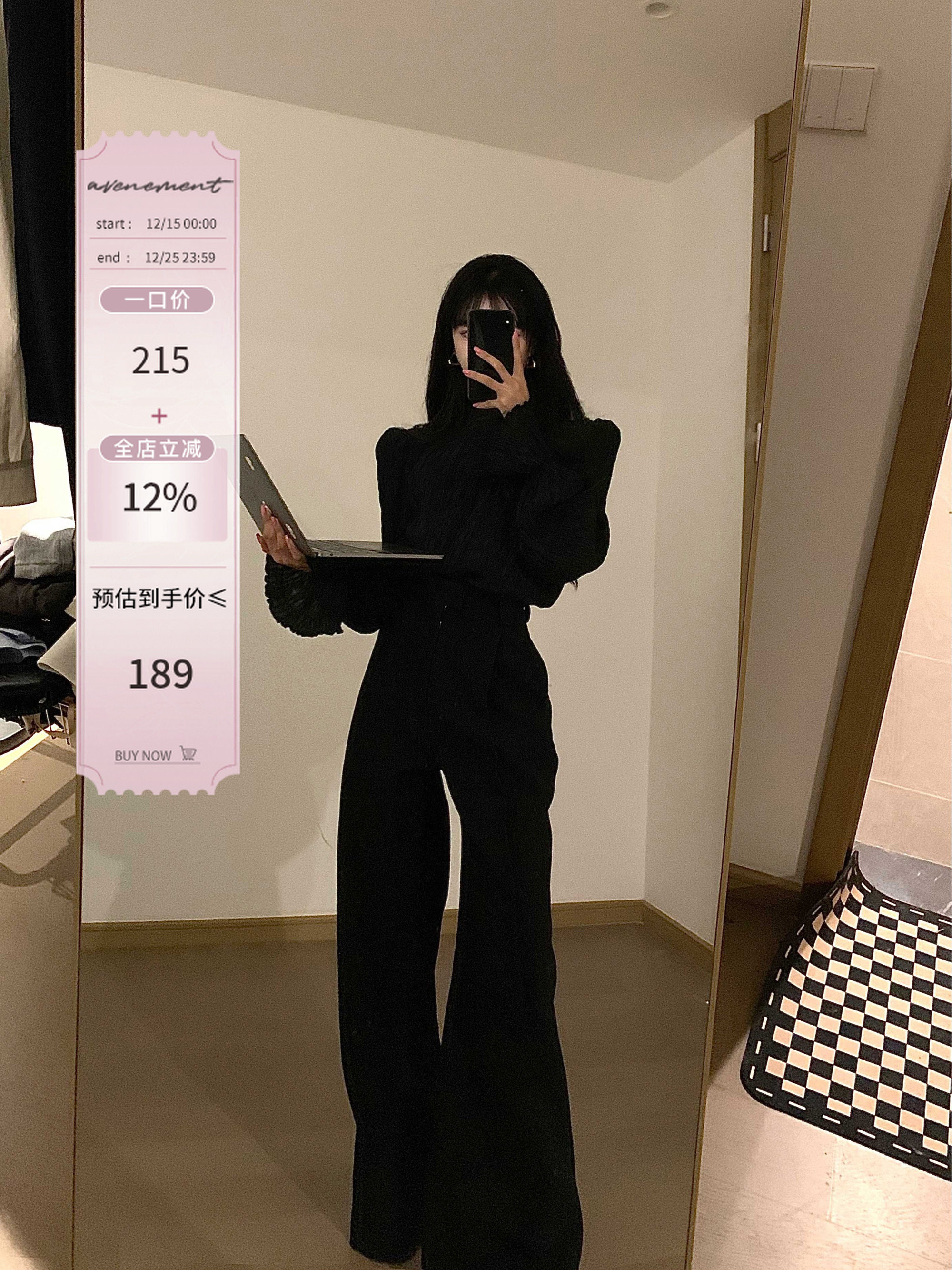 Ji Simple Row Style French High-End Straight-Leg Wide-Leg Suit Pants Casual Long Pants Floor-Sweeping Pants Suitable for Tall People