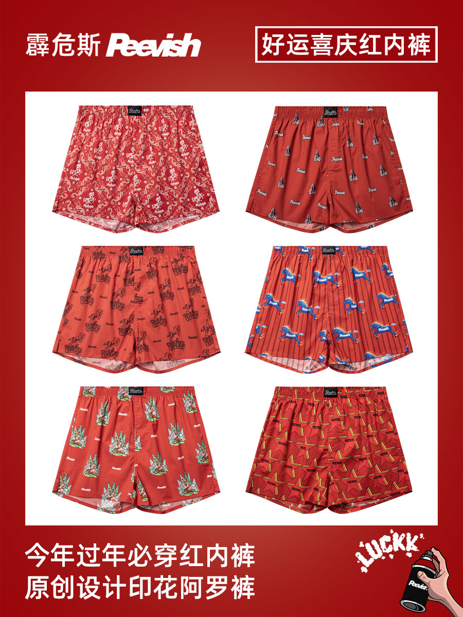Men's Red Cotton Boxer Shorts for the Zodiac Year, Loose Fit, Large Size, Home Shorts, Women's Large Shorts