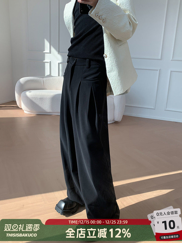 Baikouyang [Rhein River Bank] Korean-Style Pleated High-Waisted Trousers with a Draping, Loose, Versatile, Floor-Length Casual Dress Pants