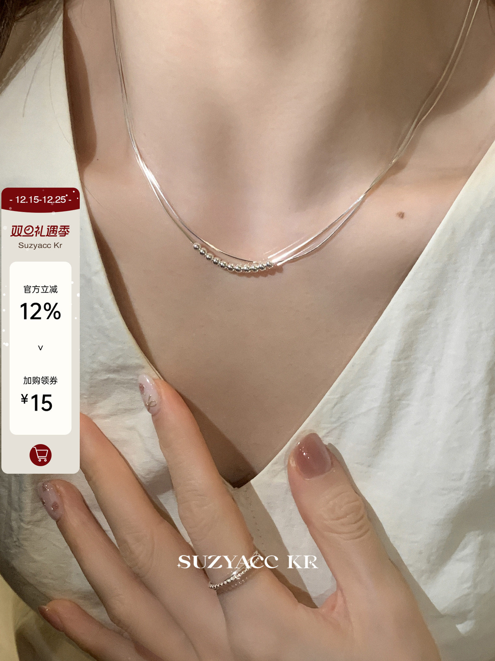Suzyacc Minimalist Style Pure Silver Double-Layer Snake Bone Chain Round Bead Necklace 2024 New Niche High-End Clavicle Chain