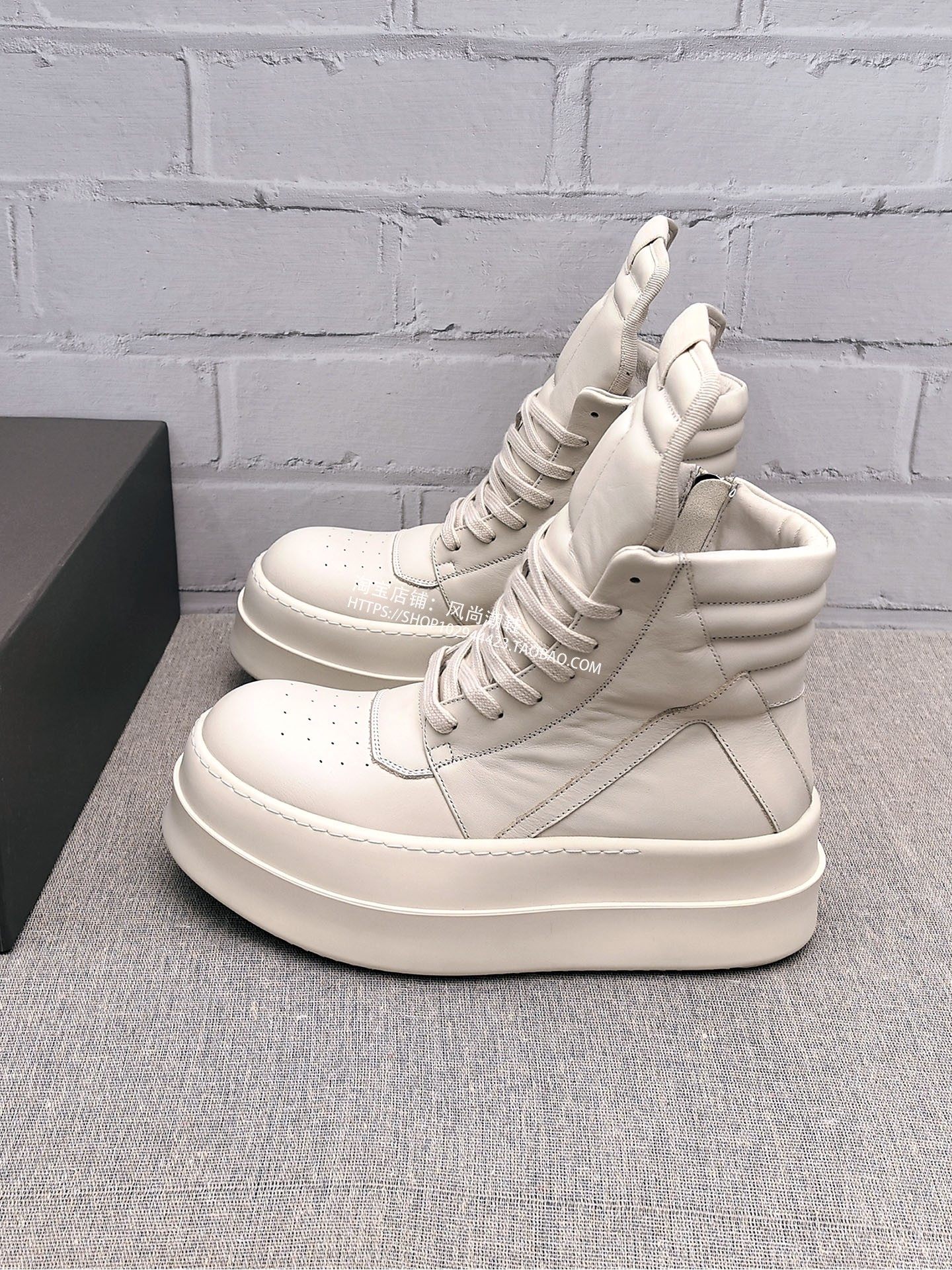 2025 New Ro Shoes High-Top Black and White Snake Pattern Inverted Triangle Genuine Leather Sneakers Men's Thick-Soled Casual Trendy Men's Short Boots