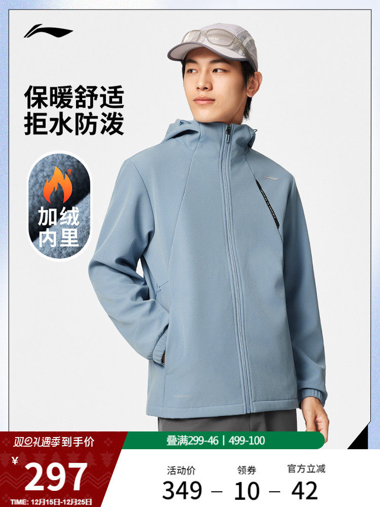 Xiao Zhan Style Li-Ning Jacket for Men, New Autumn and Winter Warm Hooded Fleece-Lined Sports Windbreaker, Water-Repellent Jacket