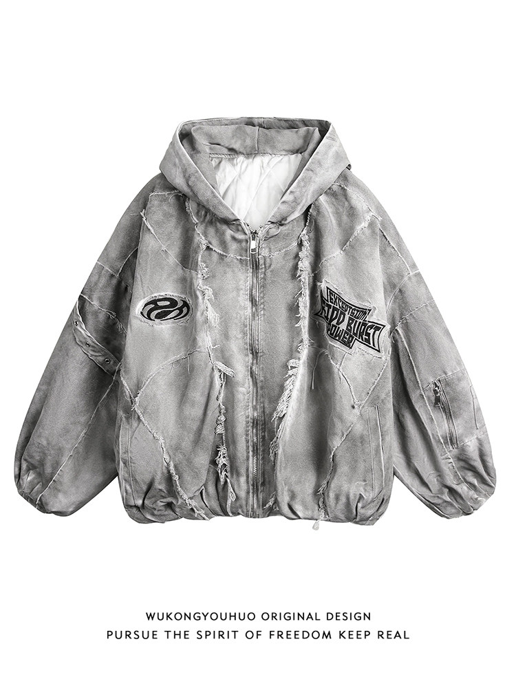 Wukong Has in Stock American High Street Wasteland Style Washed Hooded Cotton Jacket for Men, Winter Trendy Niche Brand Warm Casual Cotton Coat