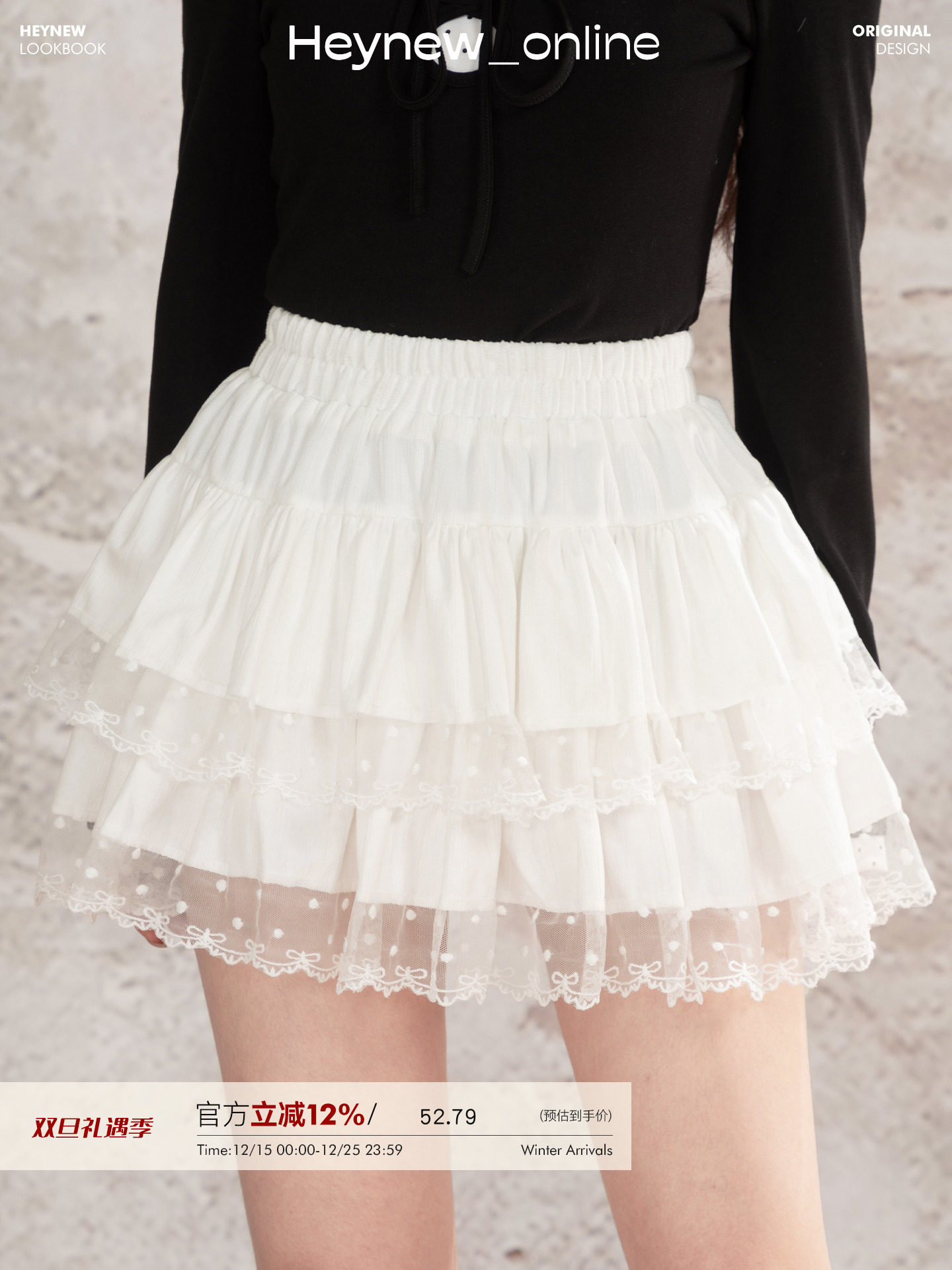 White Lace Short Skirt for Women, Spring, Autumn and Winter 2025 New High-Waisted Ballet Style Tiered Skirt, A-Line Puffy Skirt