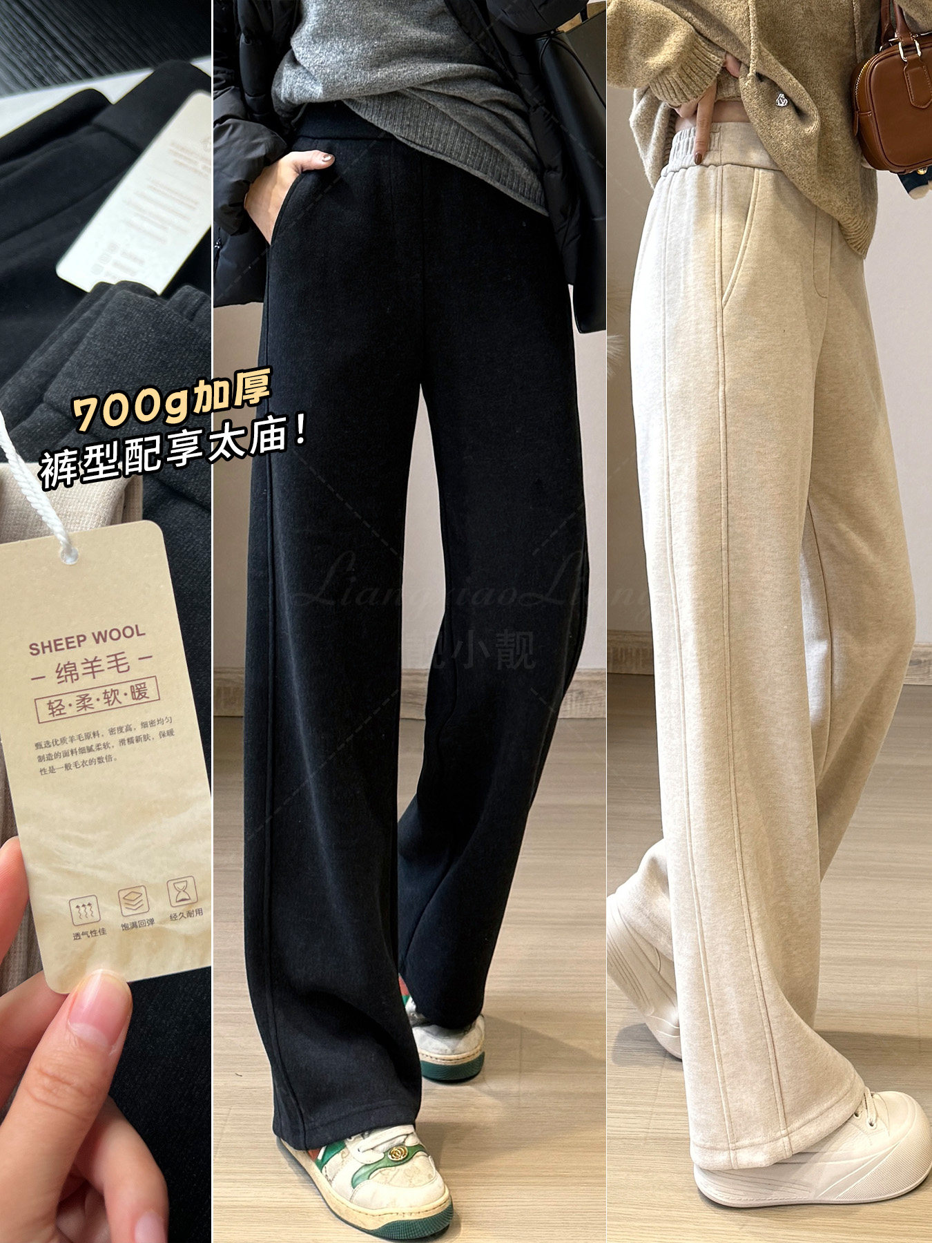 Liang Xiao Liang's Flagship Store Pants King [Minimalist Gratitude Pants] Slim-Fit Wide-Leg Pants, Neat and Slimming, Elegant Fleece-Lined Long Pants for Winter