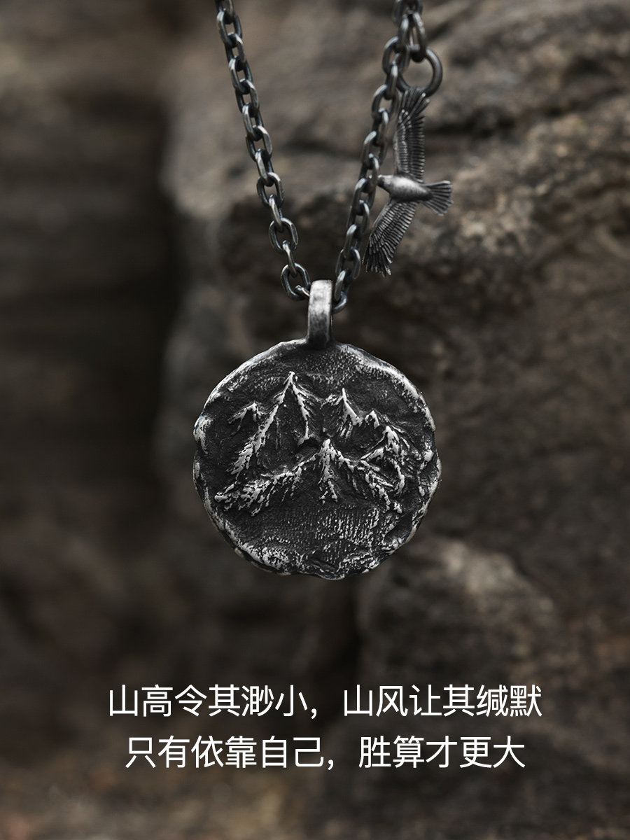 Yinshu Original "Flying Bird" Necklace for Men, 999 Pure Silver Handmade Men's Design, Niche Men's Pendant, Vintage