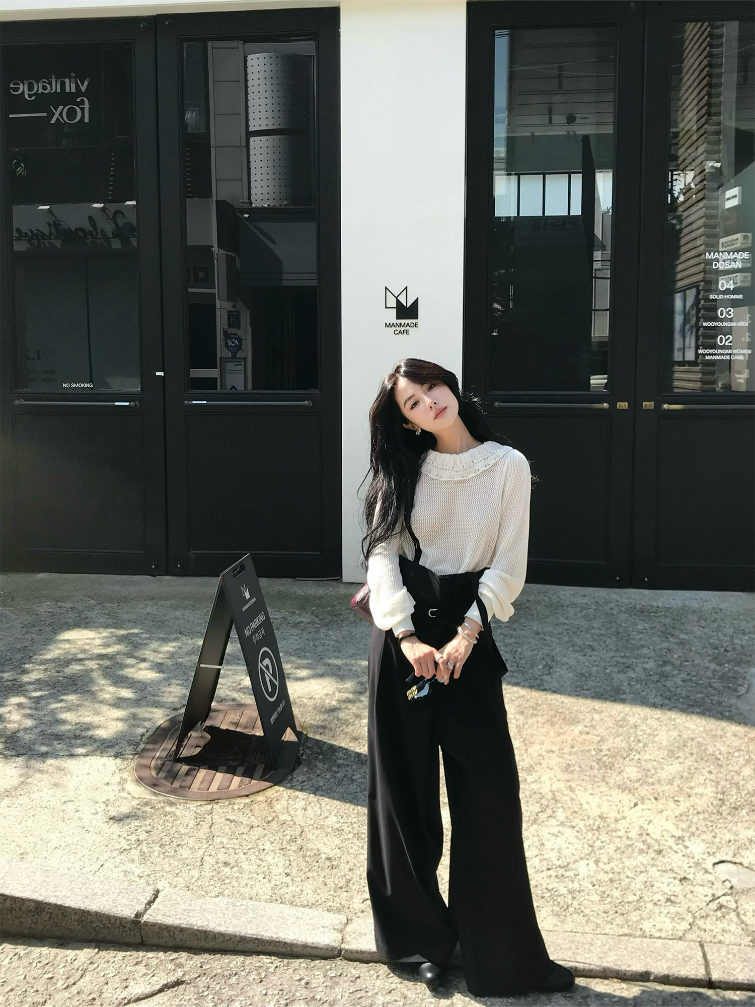 Ear Rae One Pair of Pants Can Be Worn in Two Ways! Wool High-Waisted Loose Hip-Covering Straight-Leg Suit Pants for Women, Autumn Detachable Suspender Pants