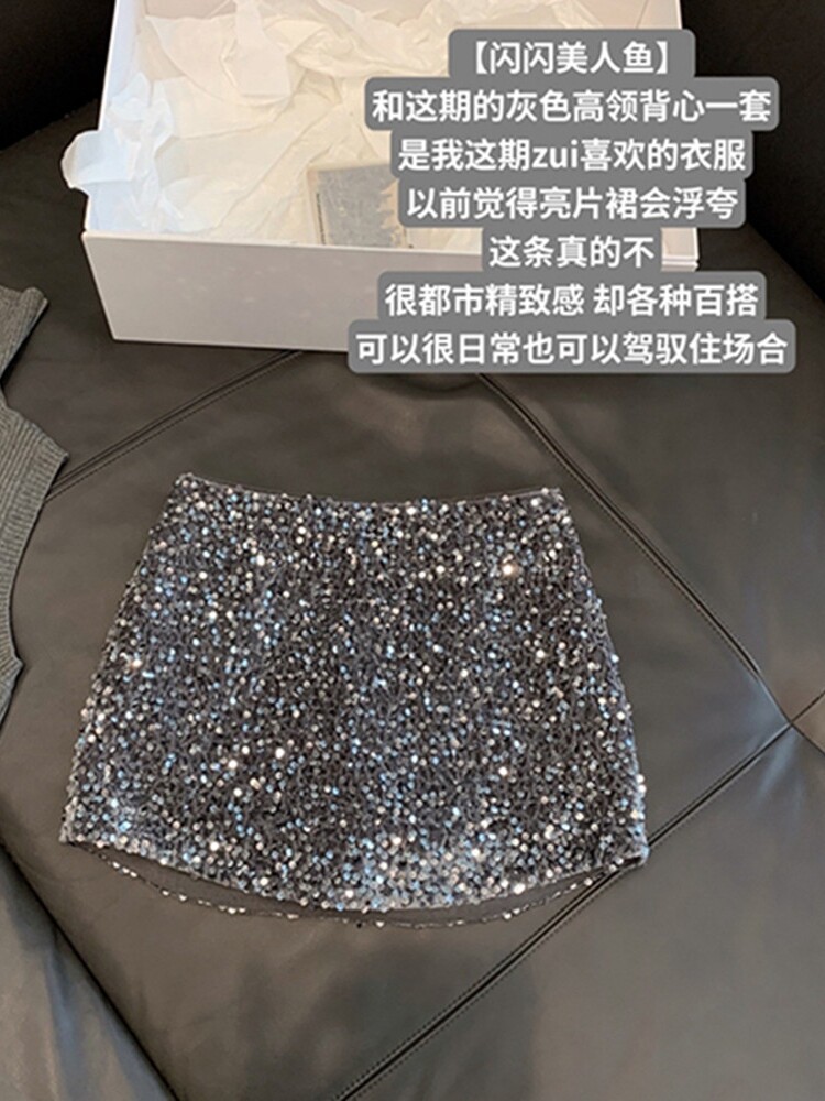 Silver-Gray High-Waisted Sequin Skirt for Women, New Autumn and Winter Style, Sexy and Pure, A-Line Skirt That Covers the Hips and Prevents Exposure