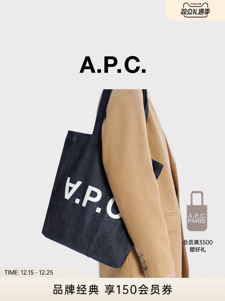 [Brand Classic] A.P.C.Tote Unisex Commuting Large Capacity Letter Denim Tote Bag