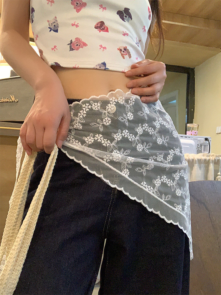 Korean Style Layered White Lace Triangle Scarf, 2025 New Style, Atmospheric Tie-Up Headscarf, Slimming Half Skirt