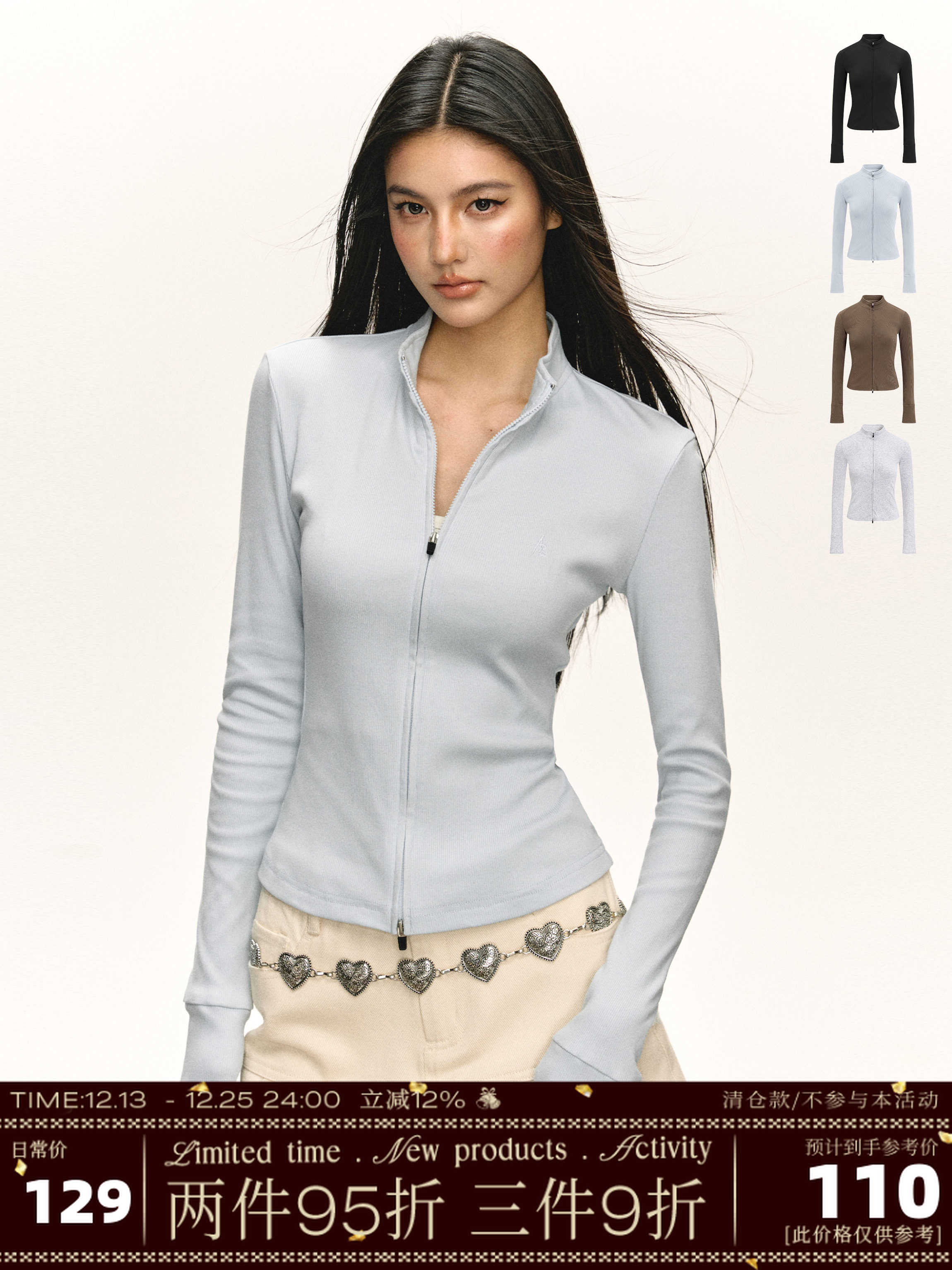 Ariseism American Retro Stand-Up Collar Yoga Cardigan Jacket for Women 2025 Autumn New Versatile Slim Fit Top