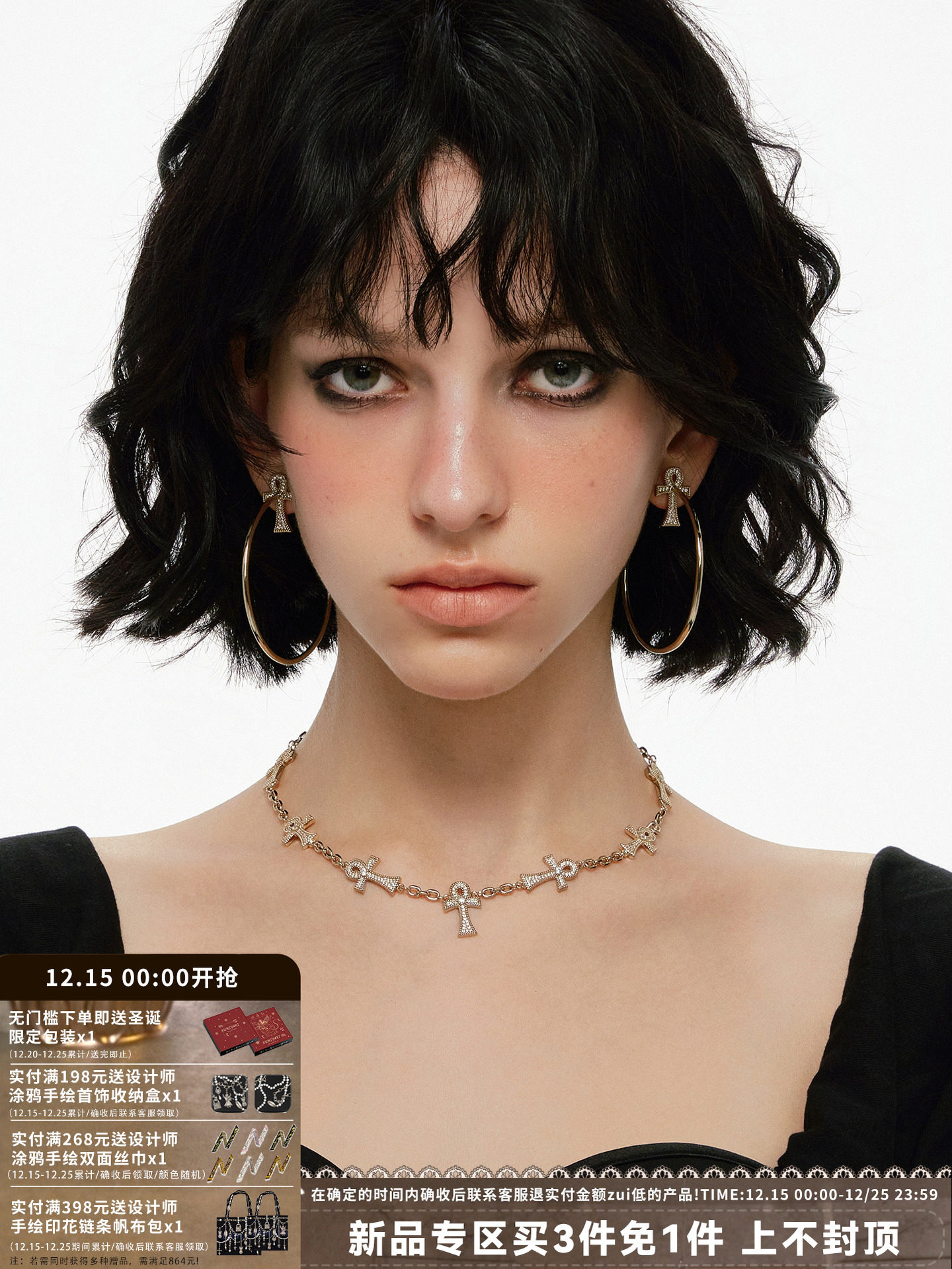 Sumiyaki Full Diamond Ankh Cross Earrings, Slimming and Face-Slimming, Large Hoop Earrings for Women