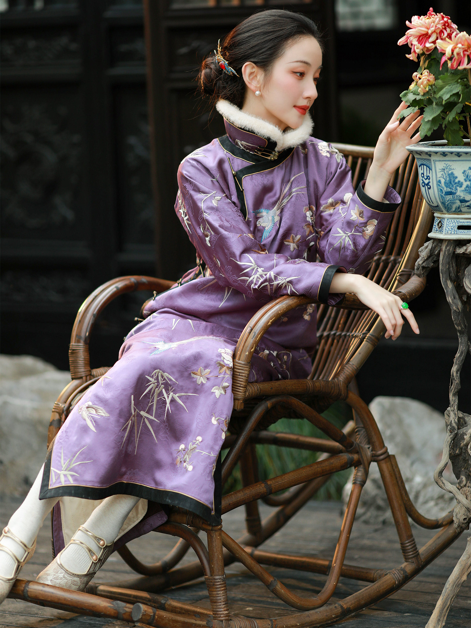 Hanhua Warmth | 2025 Winter New Collection | Silk Xiangyunsha Heavy Embroidery Quilted Yuanbao Collar Narrow Sleeve Cheongsam