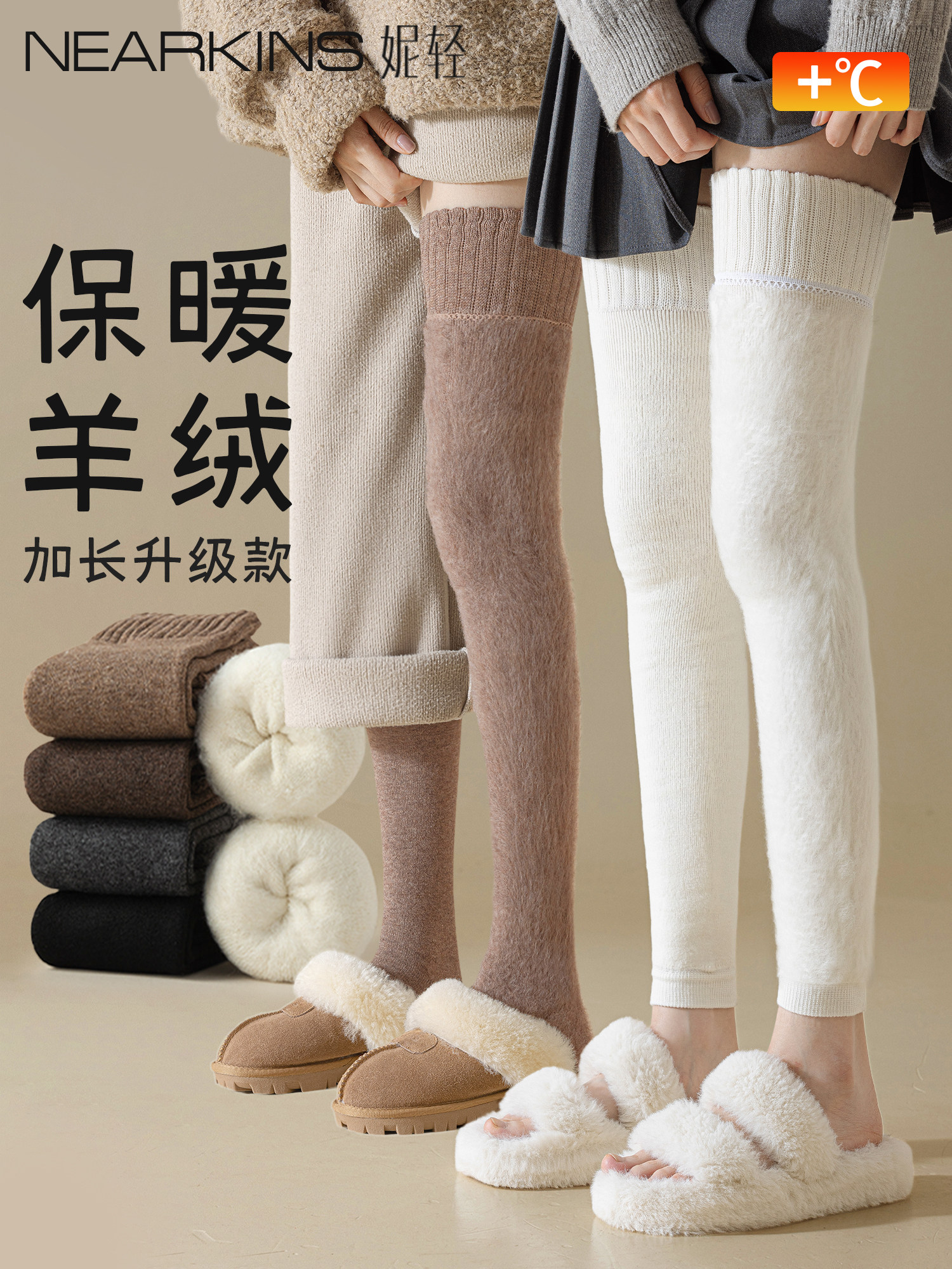 Extra-Long Over-The-Knee Socks for Women, Cashmere Knee-High Socks, Autumn and Winter Fleece-Lined, Thickened, Warm Thigh-High Socks