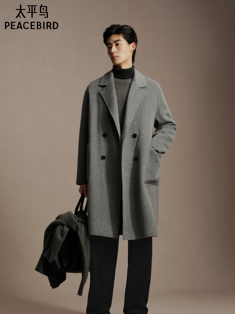 Peacebird Men's Casual Coat Loose Fashion Classic Selected Wool Blend Coat for Men