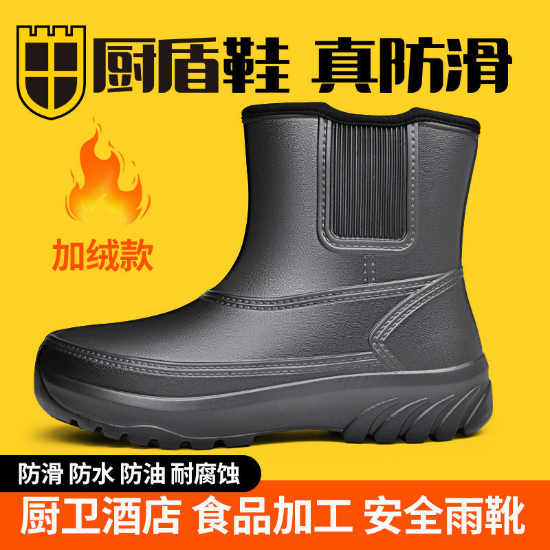 Chef Shoes, Boots, Short Boots, Non-Slip, Waterproof, Oil-Proof, Food Factory, Black and White, Professional Rain Boots, Comfortable, Fleece-Lined, Spring
