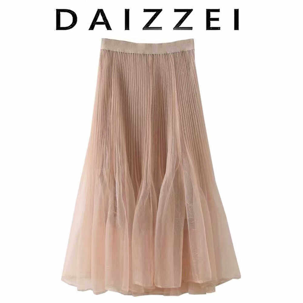 Daizzei~Pink Fairy Elastic Waist Pleated Skirt Women's Summer New Style Hip Covering Lotus Leaf Hem Mid-Length Skirt