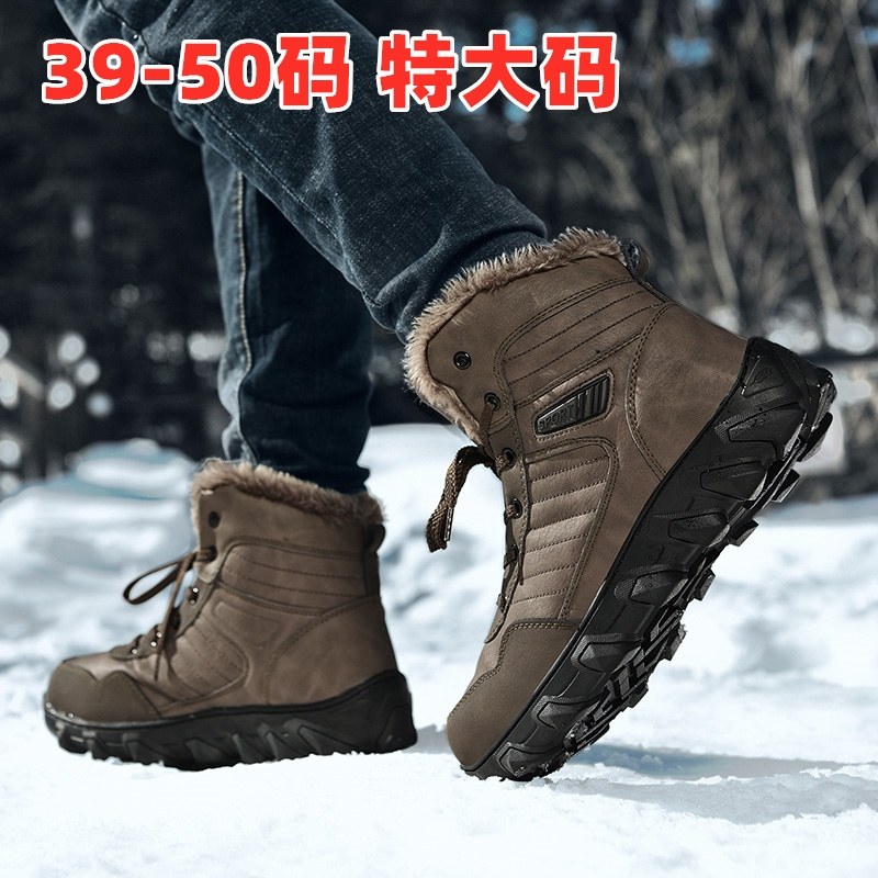 High-Top Snow Boots for Men, Winter Waterproof, Non-Slip, Warm Cotton Shoes, Extra Large Size, Northeast Winter Shoes, Outdoor Cotton Boots 4748