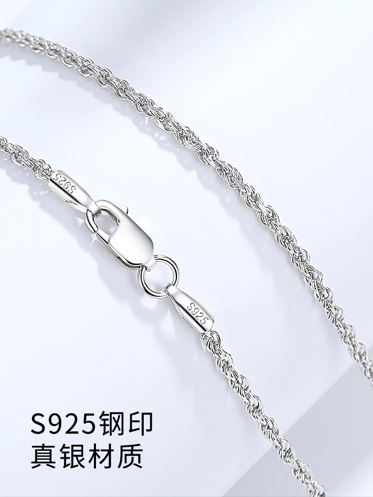Tai Fu Yin S925 Silver Hemp Rope Chain Can Be Paired with Pendants, Jade Pendants, Twist Chain, Plain Chain, Silver Necklace for Women, Versatile Sweater Chain
