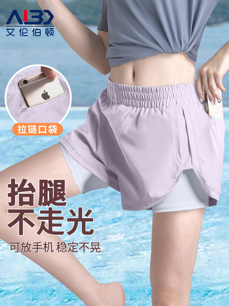Women's Swim Trunks, Anti-Exposure, Two-Piece Style, Boxer Shorts, Large Size, Single Piece, Double Layer, Quick-Drying, Professional Swimwear for Swimming