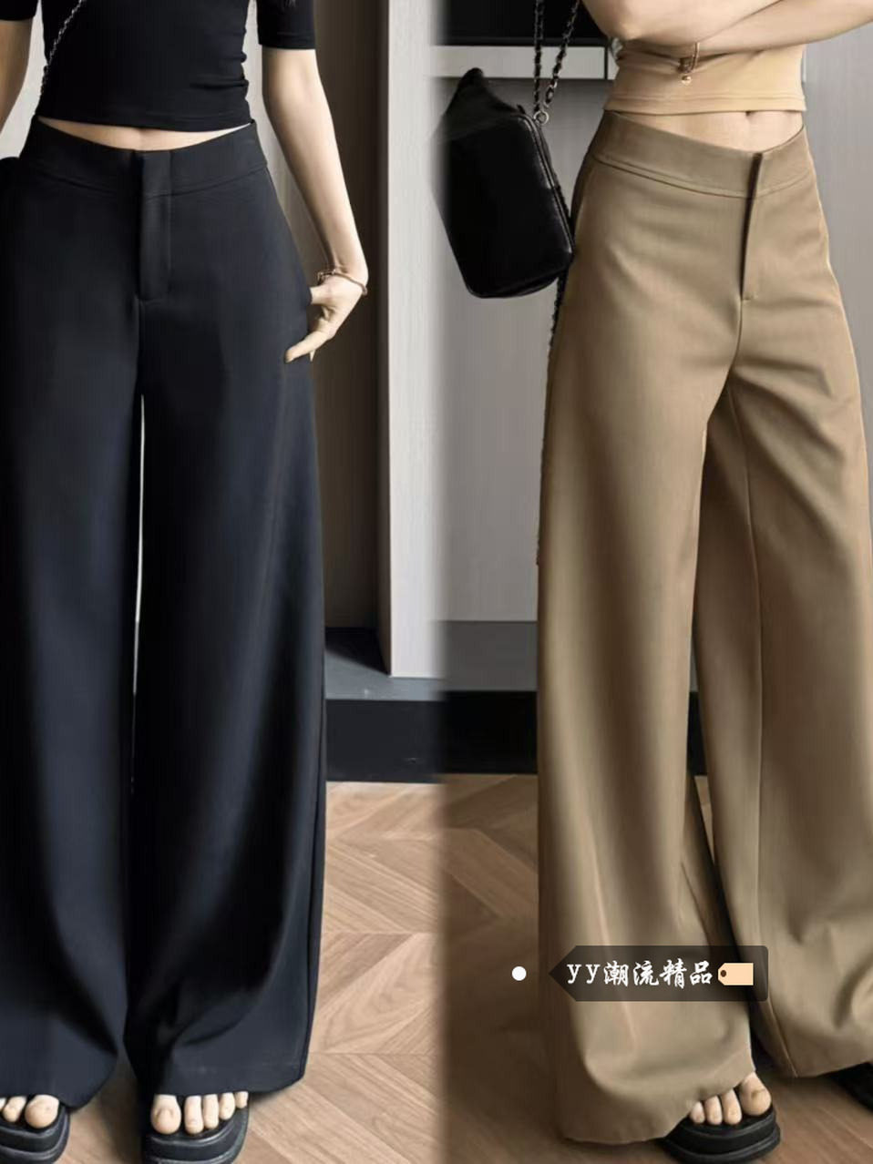 Black Low-Waisted Suit Pants for Women 2025 New Winter Coffee-Colored Pants with a Stylish, Casual, and High-End Feel, Straight-Leg Wide-Leg Pants