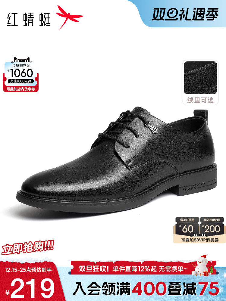 Red Dragonfly Men's Shoes Autumn and Winter Men's Business Formal Wear Men's Genuine Leather Shoes Comfortable Soft Sole Wedding Groom Derby Shoes