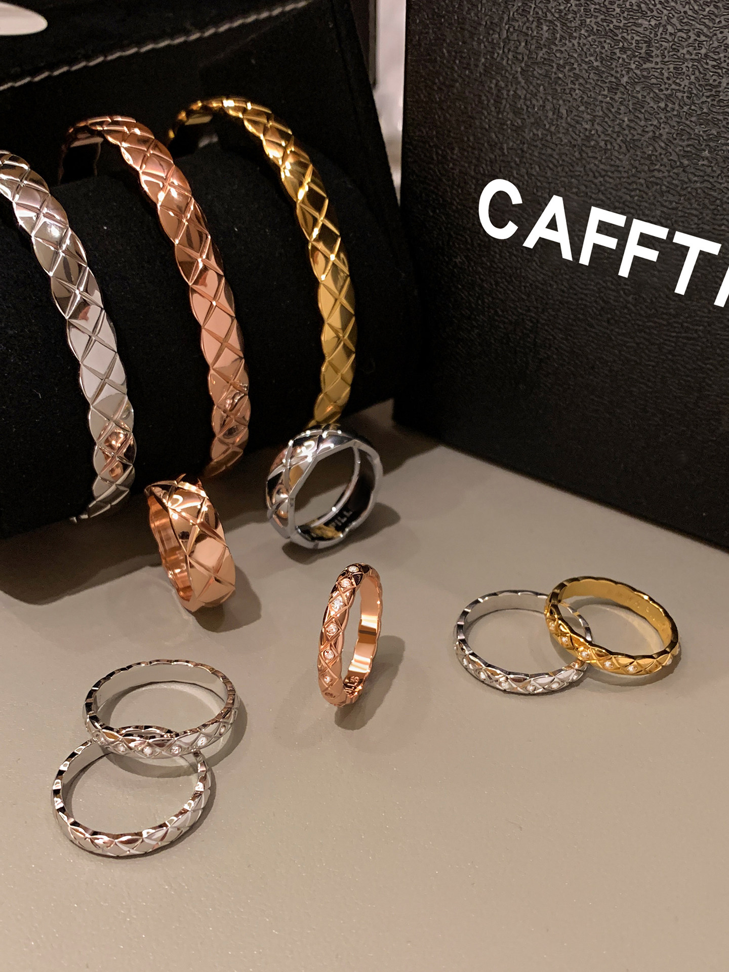 Small Chanel-Style Metallic Silver Rose Gold Diamond-Patterned Thin Ring for Women, Niche Design, Light Luxury, High-End Feel, Stackable Index Finger Ring