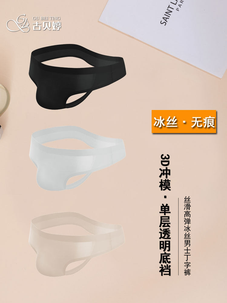 European and American Style One-Piece Sexy Ice Silk Seamless Men's Thong Ultra-Thin Transparent Sports Fitness Underwear for Men