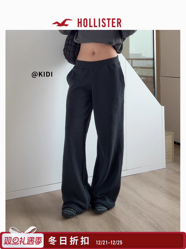 【Loose Wide-Leg】Hollister25 Autumn/Winter New Baggy Warm Fleece Sweatpants Women's Clothing 347-5097
