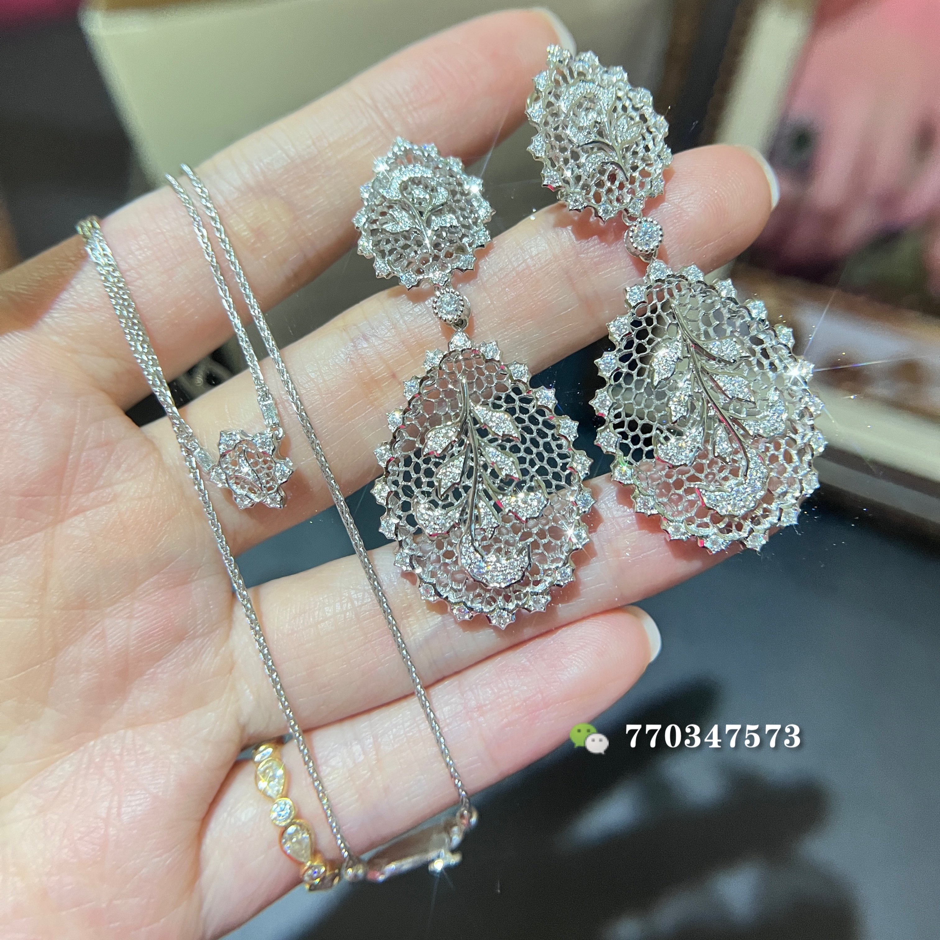 Tulle Series Honeycomb Earrings 18K Gold Diamond Leaf Earrings Three-Way Detachable Pendant