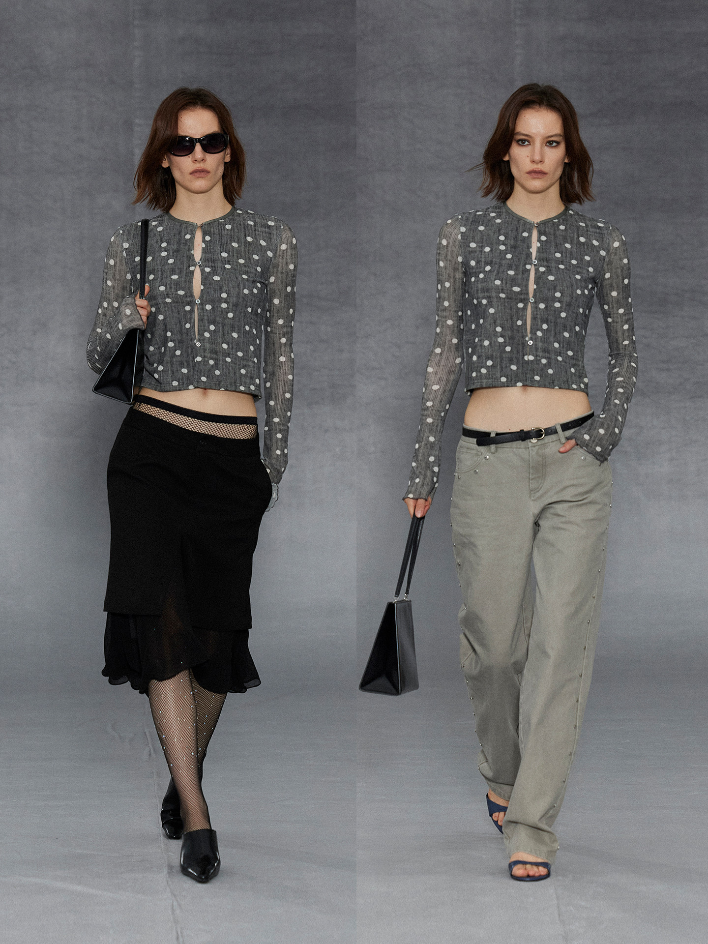 Randpickee | Retro Series-Printed Polka-Dot Long-Sleeved Top Knitted Short Cardigan