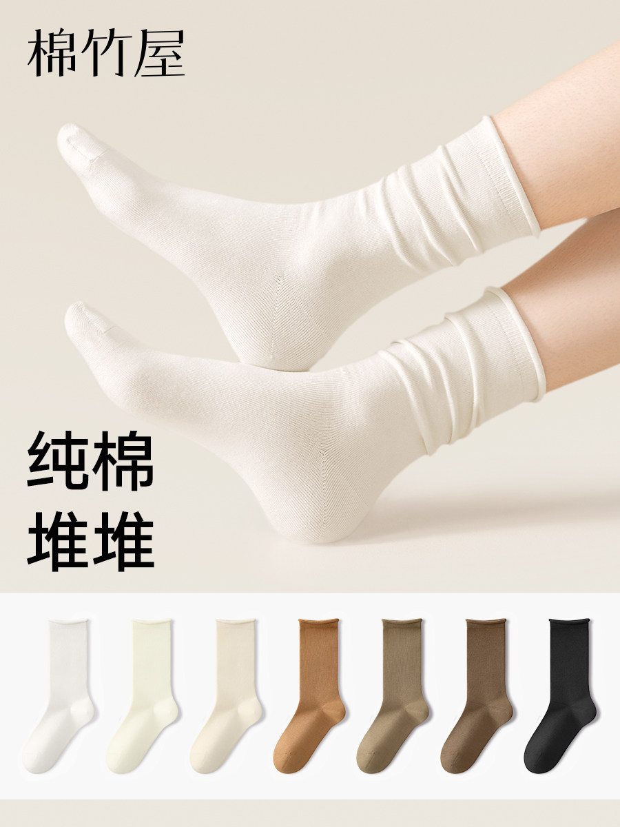 Women's Pure Cotton Mid-Calf Socks for Autumn and Winter, Paired with Small Leather Shoes, White, Odor-Resistant, Suitable for Spring and Autumn, Seamless for Postpartum Use