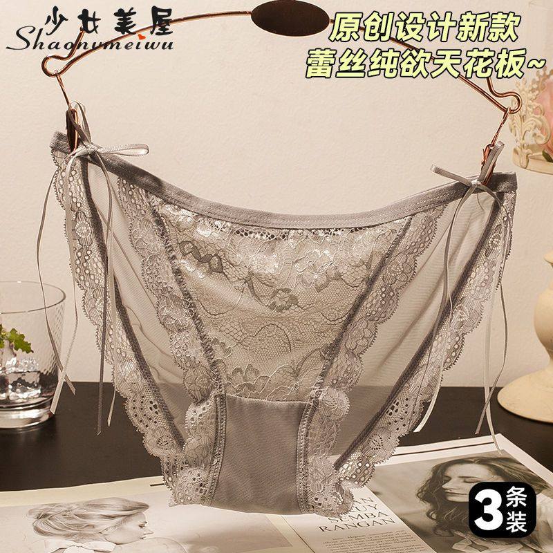 Girly Lace Transparent Thin Panties, Feminine Bow, Pure Desire, Low-Waist Butt-Lifting Briefs