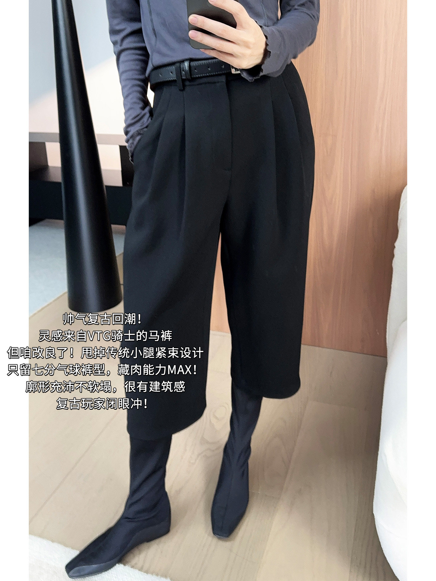 Meiyang【In Stock】Breeches Vtg Vintage~Three-Dimensional Double Pleated Three-Quarter Length Riding Balloon Pants【Small 70】