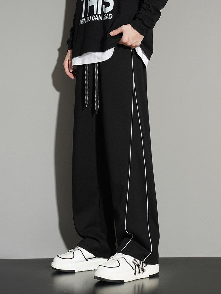 Men's Plus-Size Straight-Leg Sweatpants for Autumn and Winter, Trendy Brand, Extra Large, Loose Wide-Leg Pants with Drape for Teenagers