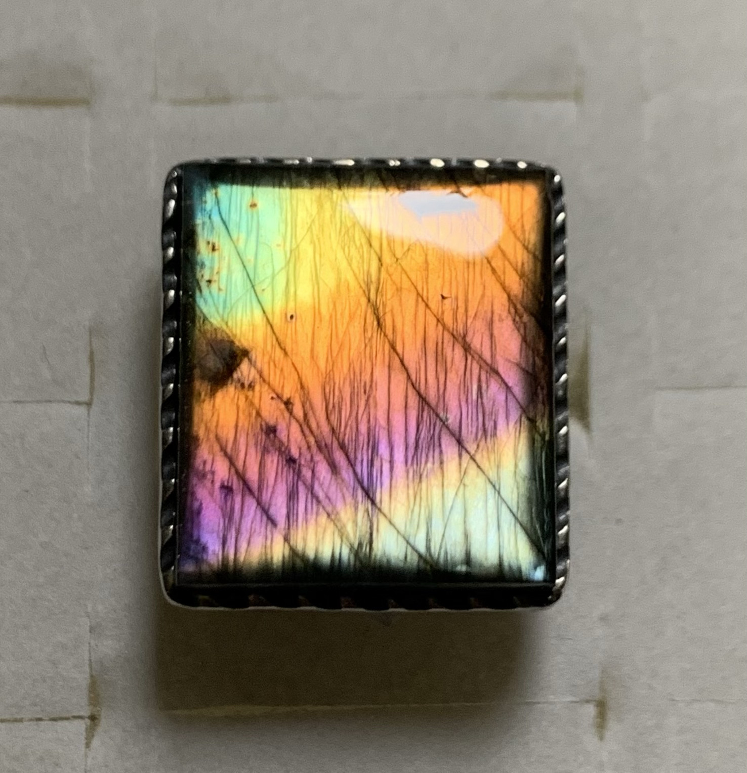 Rare Purple Labradorite Design Heavy-Duty Ring, Gray Moonlight Vintage 925 Silver Adjustable Open Ring 6B