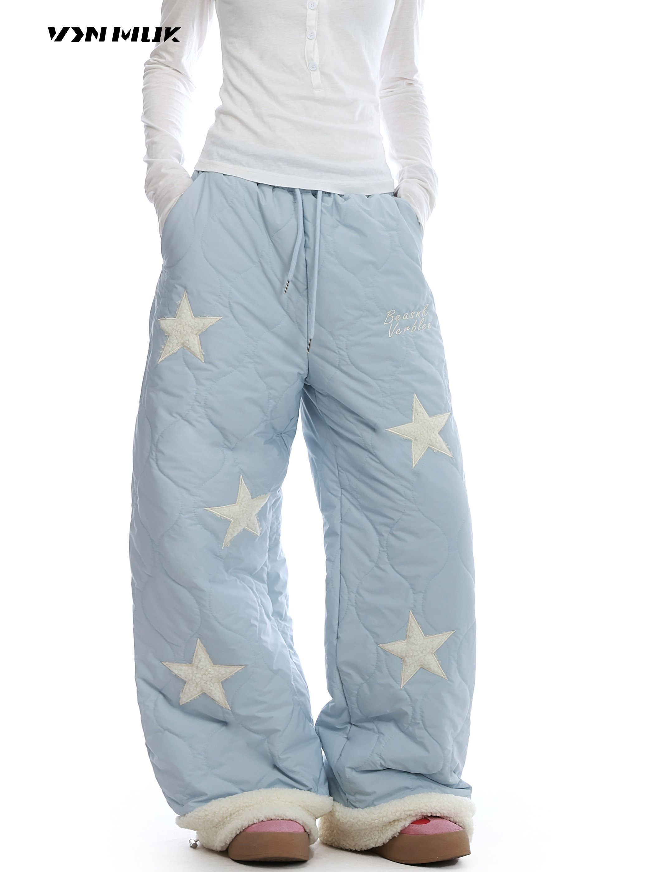 Vinmuk American-Style Lamb Wool Northeast Warm Outerwear Cotton Pants for Women, Winter Thickened Windproof and Cold-Resistant Pants, Ski Pants