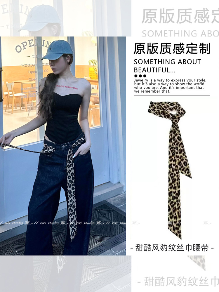 Millennial Hot Girl Leopard Print Scarf Niche Belt Outfit Jeans Accessories Y2K Waist Accessory Ribbon New Waist Chain for Women